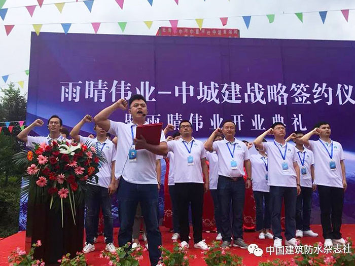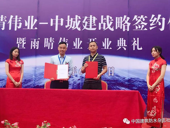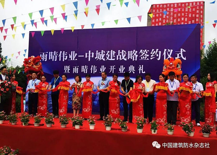 2018年6月21日, 湖北雨晴偉業(yè)防水技術(shù)發(fā)展有限公司開業(yè)慶典暨中城建戰(zhàn)略簽約儀式活動現(xiàn)場賓客云集,人頭攢動,場面火爆、掌聲如雷。這標志著雨晴偉業(yè)從今天起正式的面向大眾,面向市場,也意味著雨晴偉業(yè)工廠的正式運營。