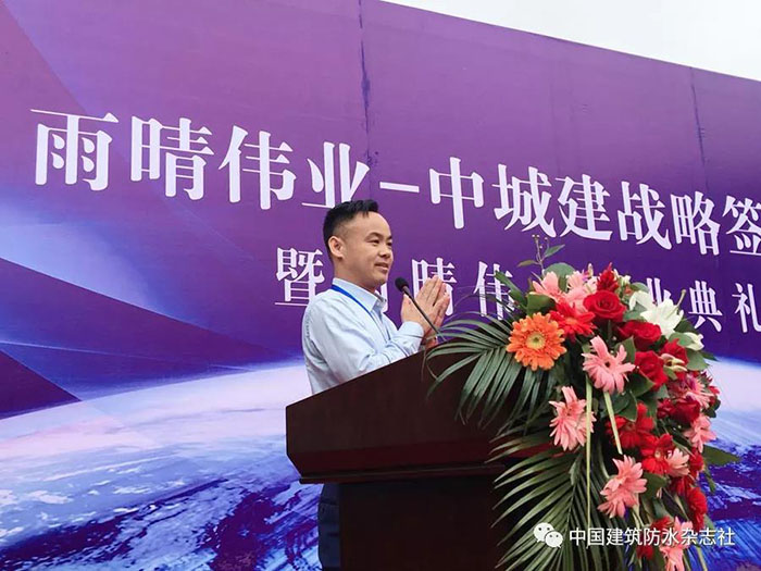 簽約儀式結(jié)束,湖北上德偉創(chuàng)防水工程有限公司的總經(jīng)理李偉代表客戶進行了講話,他說自與雨晴合作以來,雨晴集團給了所有客戶在價格、質(zhì)量、服務(wù)等全方位的支持,讓其切實感受到了雨晴集團始終將客戶的利益放在第一位,想客戶所想,急客戶所急,認為這就是雨晴的成功所在。